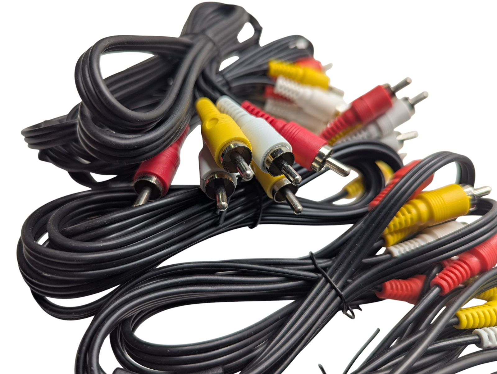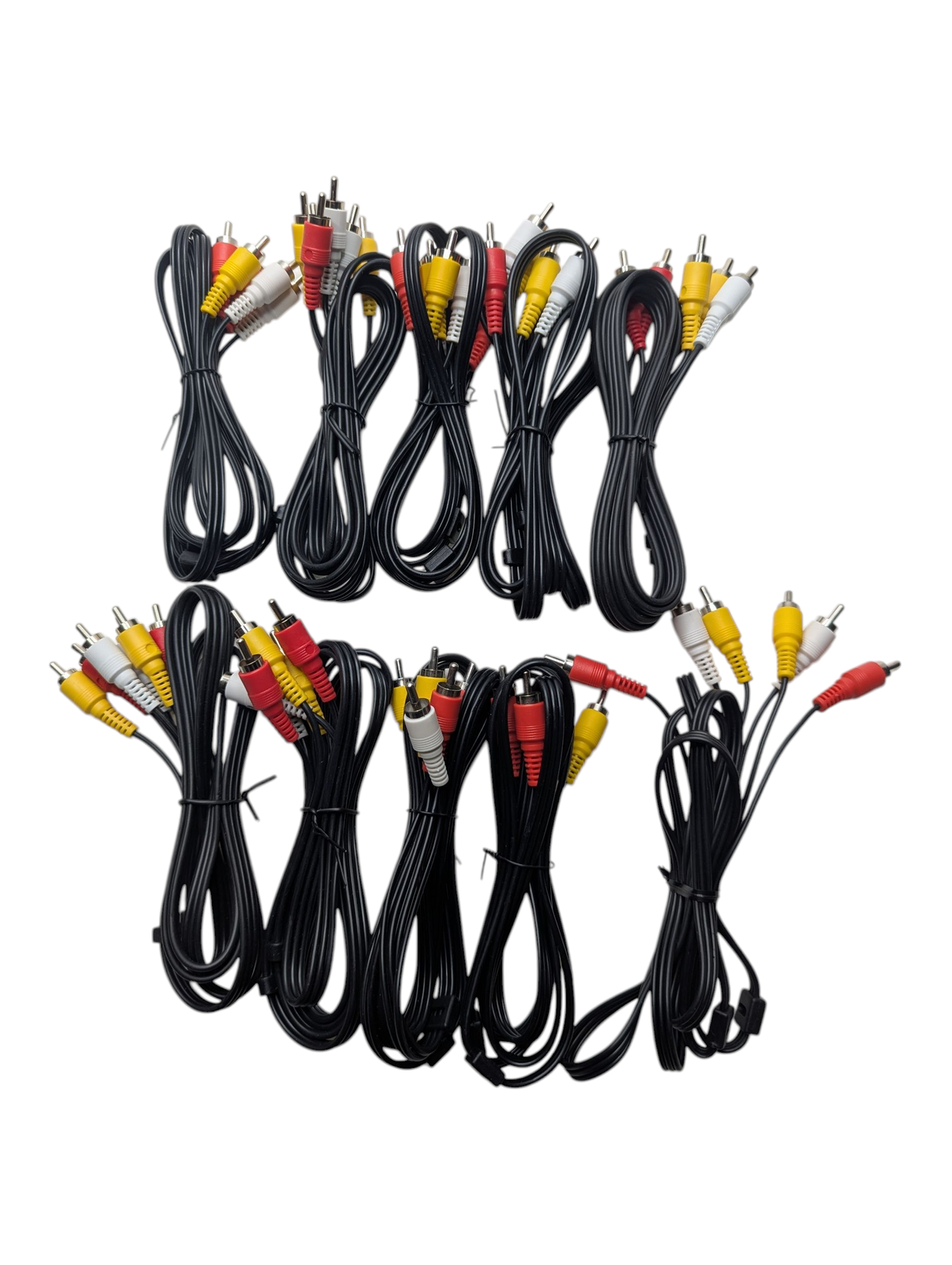 Ten (10) 5-foot 3-RCA Male to Male Composite Audio/Video Cables NOTE: Ships in non-retail packaging.