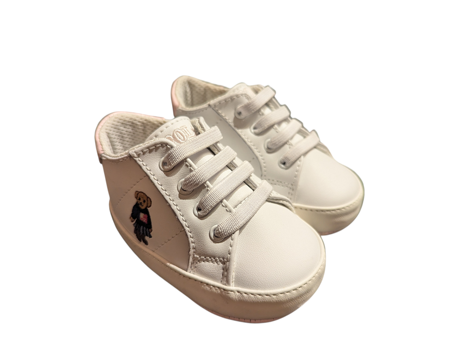 Polo Ralph Lauren Quilton Bear Baby Shoes Size 2 White Pink Embroidered Teddy