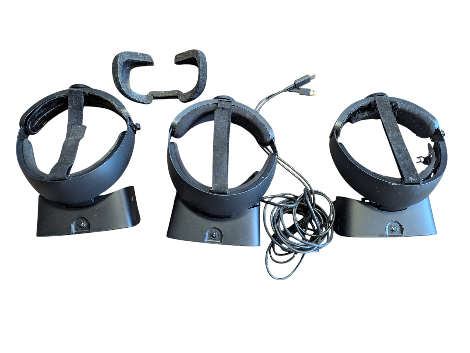Three (3) Oculus Rift S VR headsets (damaged and untested) One (1) cable for connection to PC NOTE: Controllers, additional cables, and original packaging are NOT included.