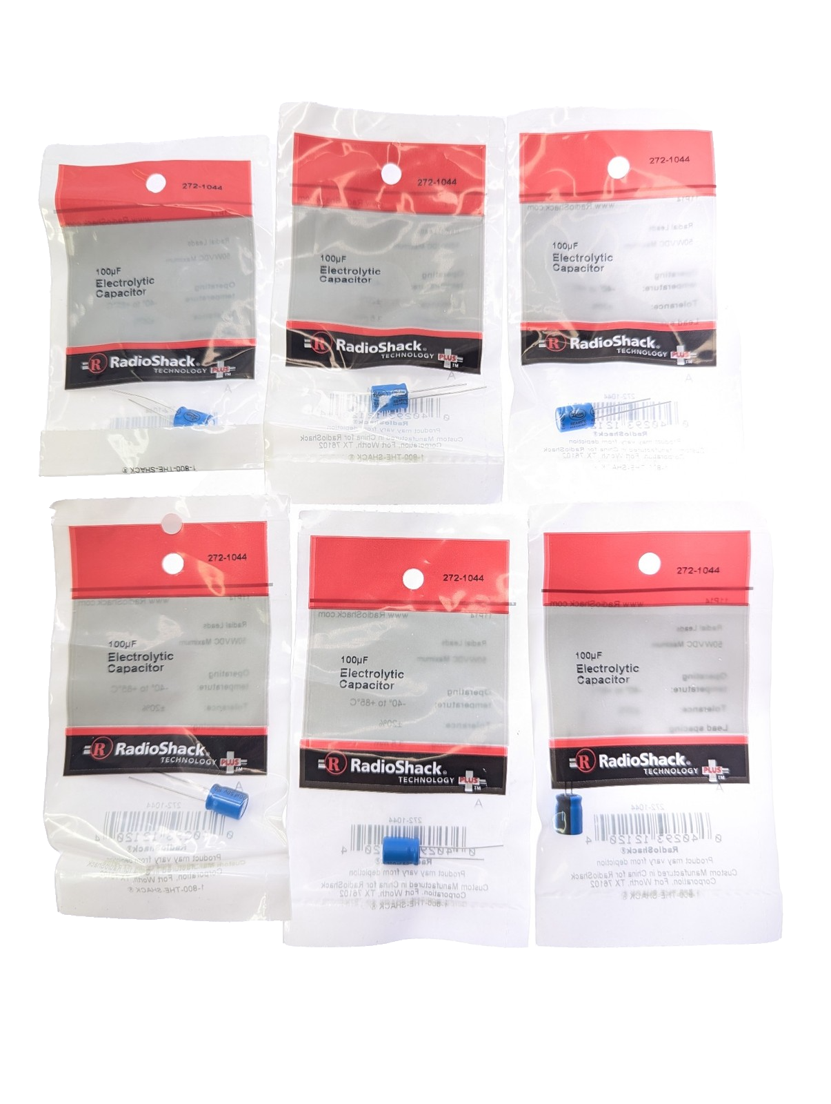 RadioShack 100uF 50V Electrolytic Capacitor 272-1044 – Pack of 6