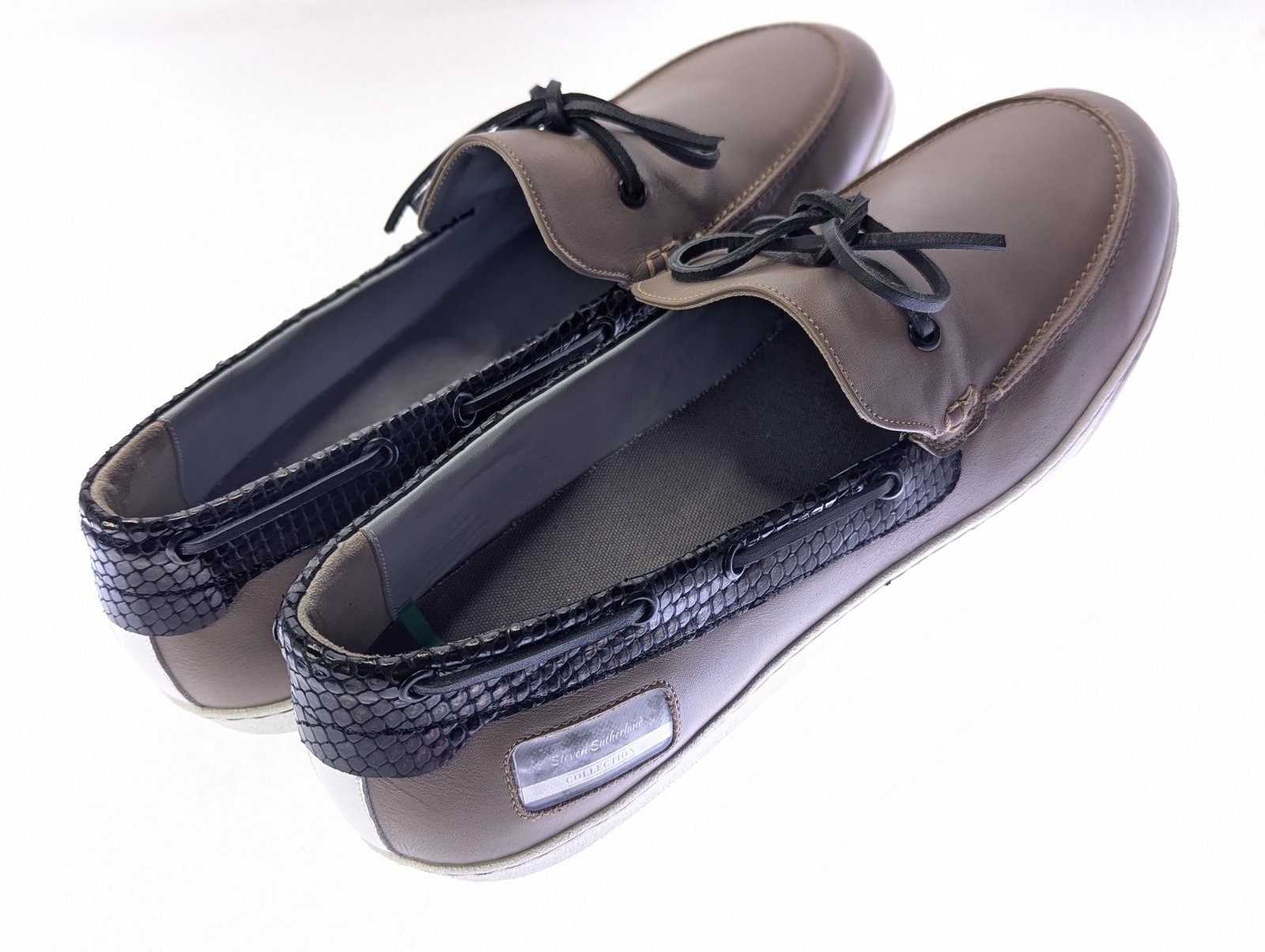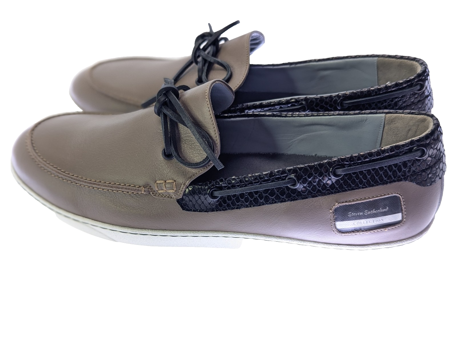 Steven Sutherland Custom Leather Boat Mens Shoes Beige & Black Sole Size 12