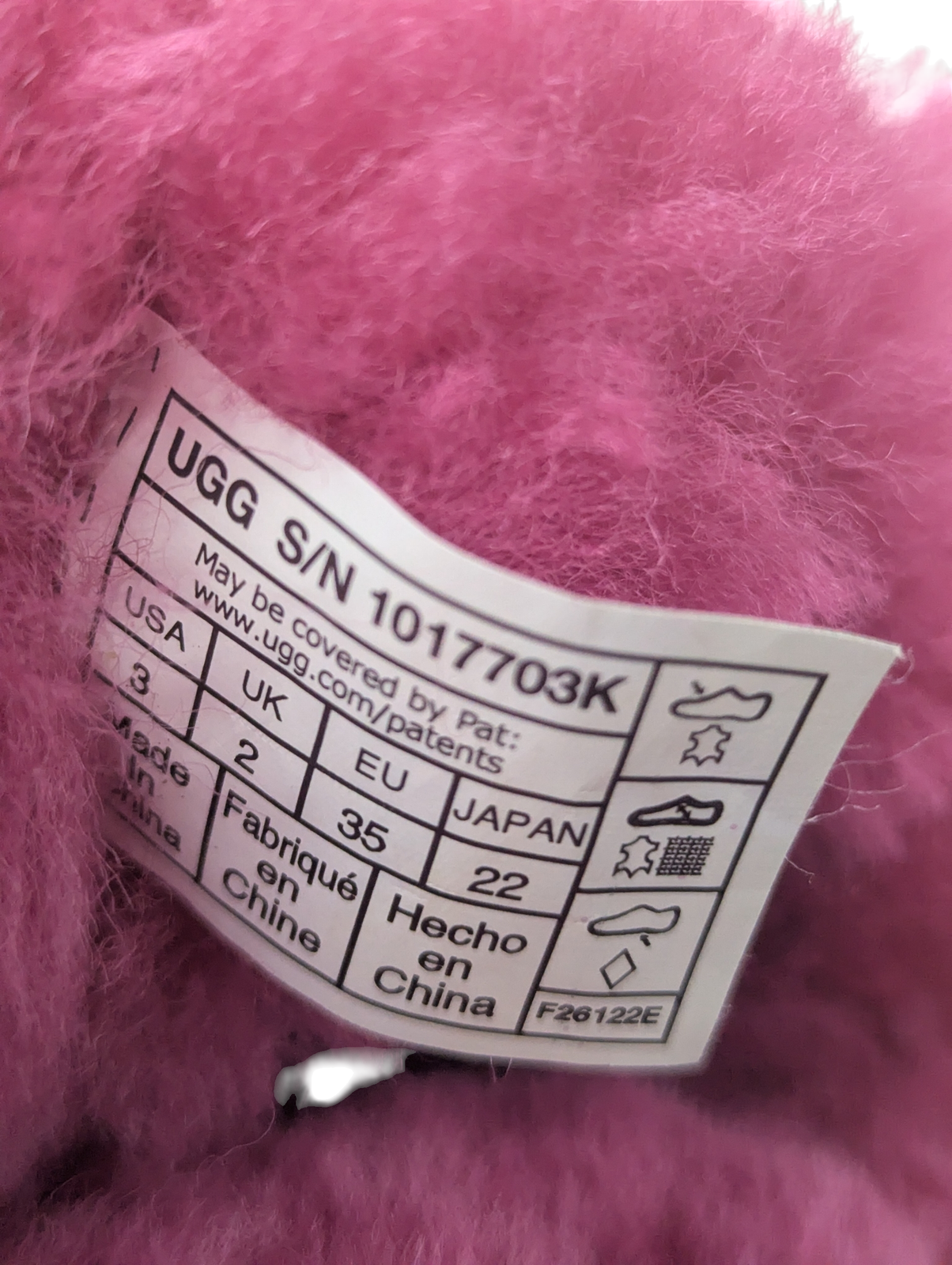 Brand: UGG Model: Classic II Boot (Style 1017703K) Color: Purple Upper Material: Suede Lining: Sheepskin for warmth and comfort Water-Resistant Treatment: Helps protect against moisture and staining Treadlite by UGG™ Outsole: Lightweight and durable for traction US Size: 3 (Little Kids) / EU 35