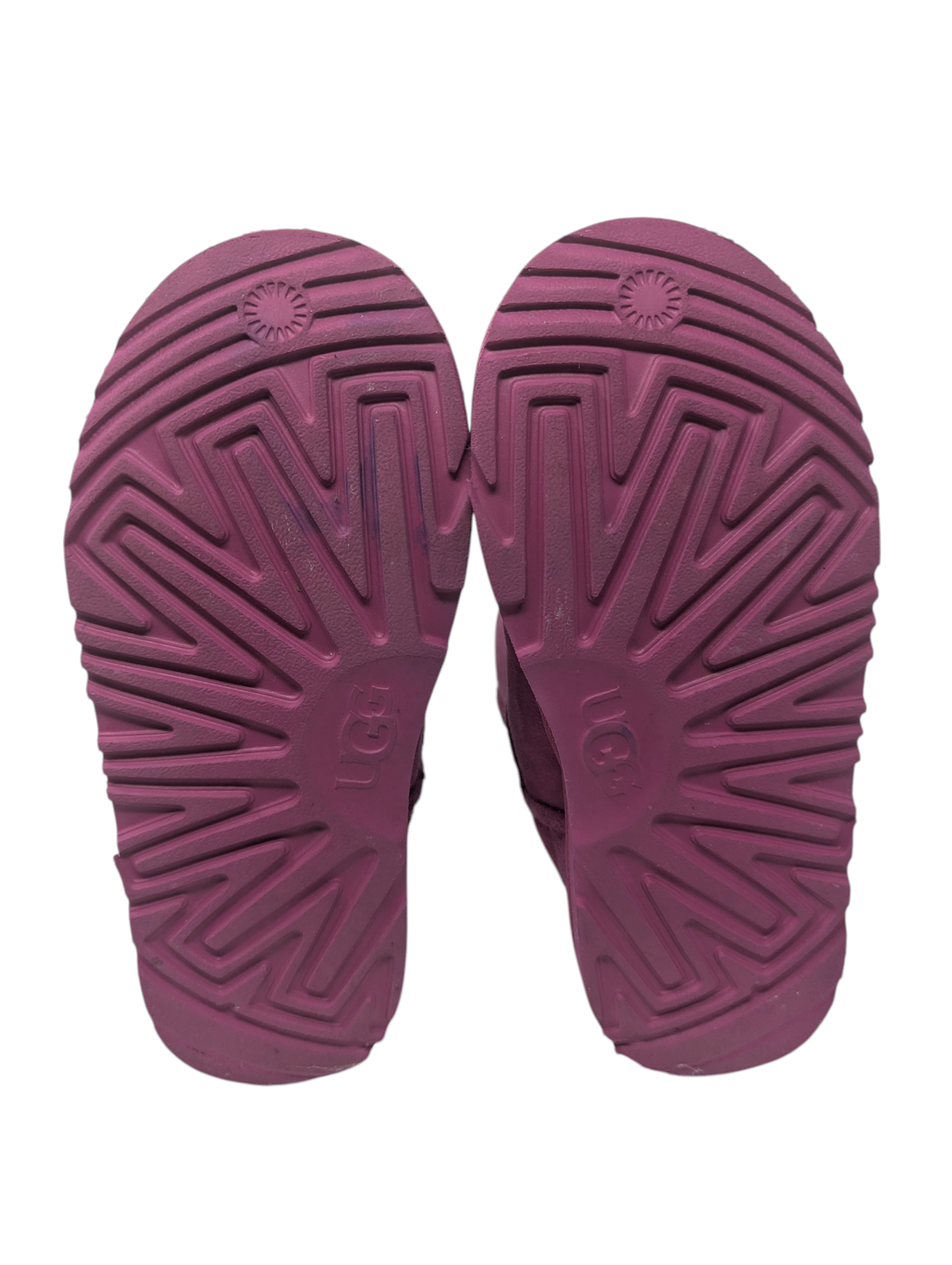 These are genuine UGG Kids Classic II Boots in a rich purple suede, size US 3 (little kids). They feature a pre-treated water-resistant suede upper and plush sheepskin lining to keep feet warm and comfortable. The Treadlite by UGG™ outsole provides lightweight cushioning and durability. Perfect for keeping your child’s feet cozy during chilly weather.